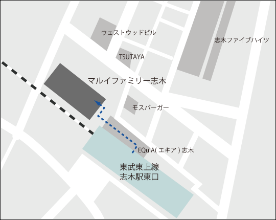 アクセス 東武東上線志木駅東口から徒歩1分 マルイファミリー志木8階(駅直結)
